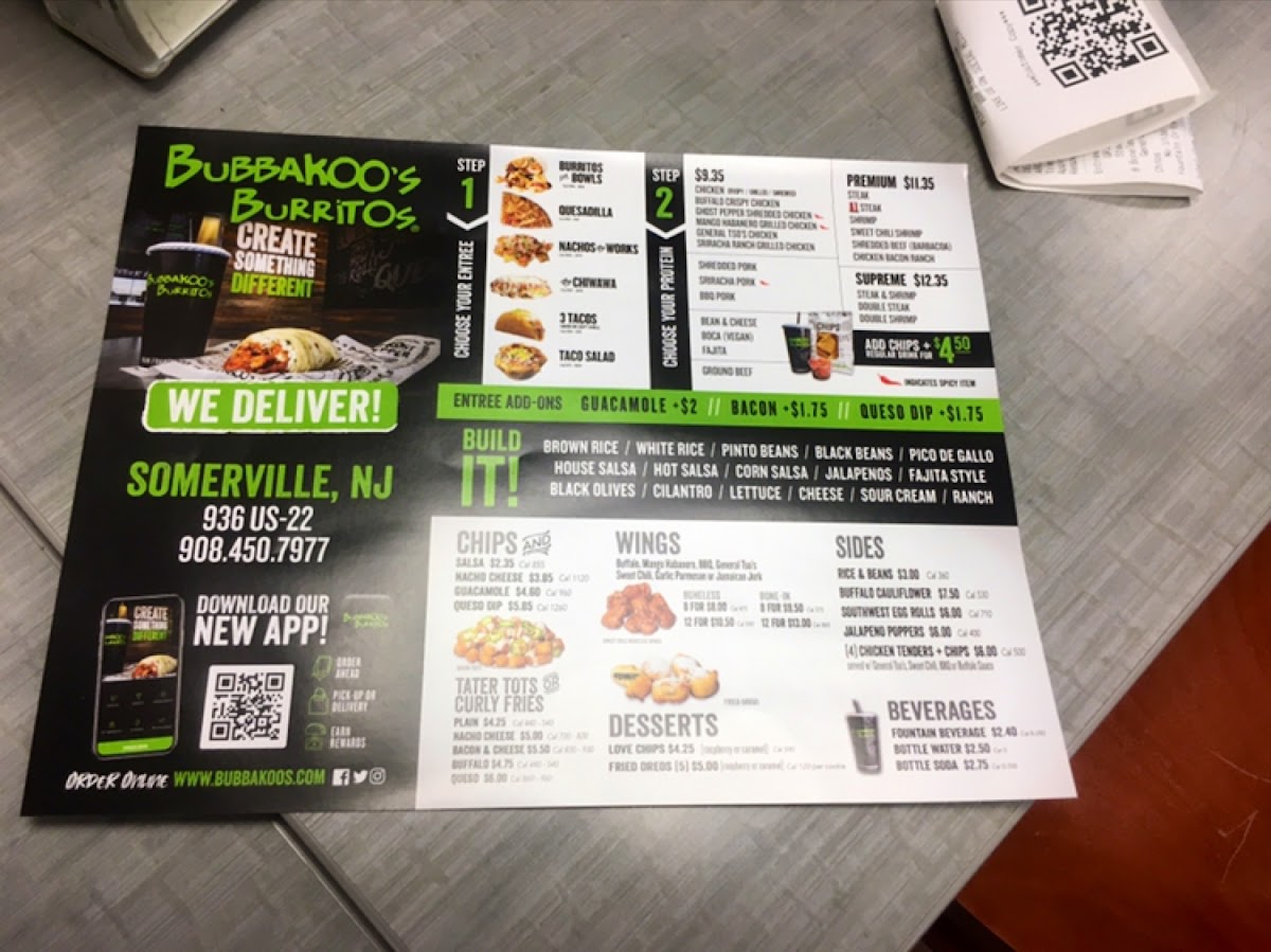 Welcome to Bubbakoo's Burritos, a vibrant Mexican eatery located in Somerville, NJ! This culinary hotspot invites you to build your own entrées, offering a scrumptious selection of burritos, burrito bowls, and quesadillas. Each dish is customizable with an array of fresh toppings and proteins, all enveloped in their signature flour tortillas or served in low-carb options. The starters, such as crispy boneless wings and seasoned curly fries, set the stage for a delightful meal. Don't miss their kids' bites, perfect for the little ones looking for flavorful options!